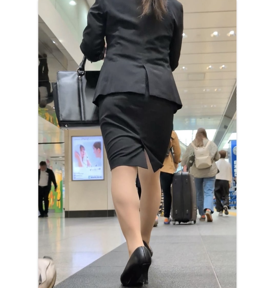 【474】黒パンストのエレガントスーツOLさんの歩行をじっくりと!